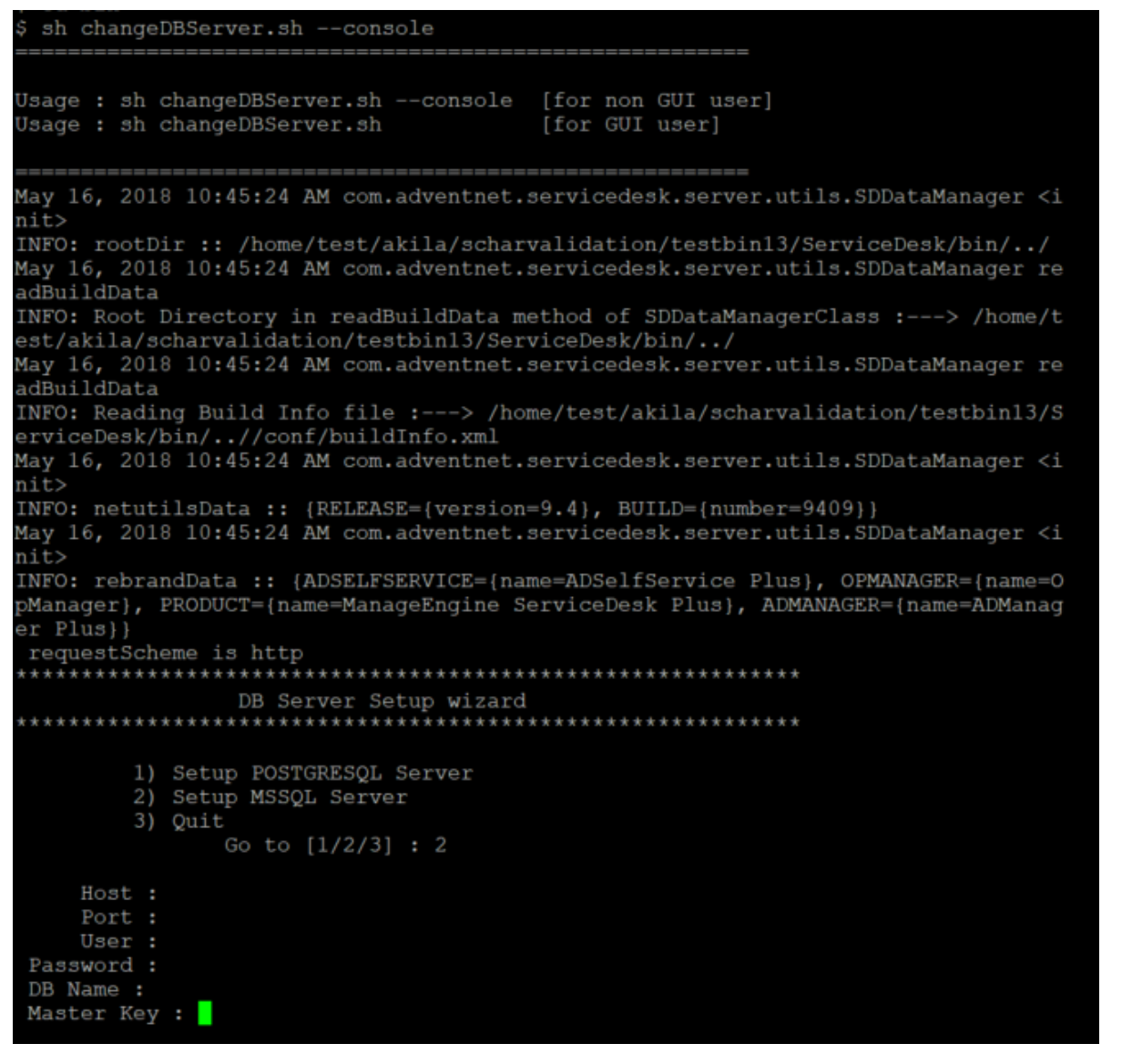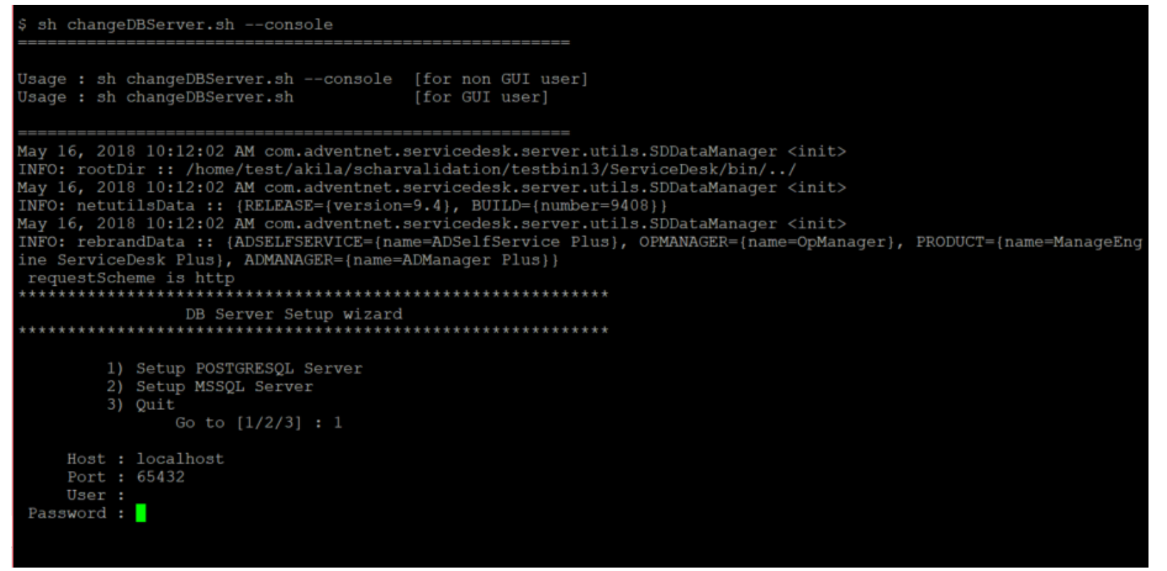 C:\[ServiceDesk Plus Home]\bin>changeDBServer.bat --console