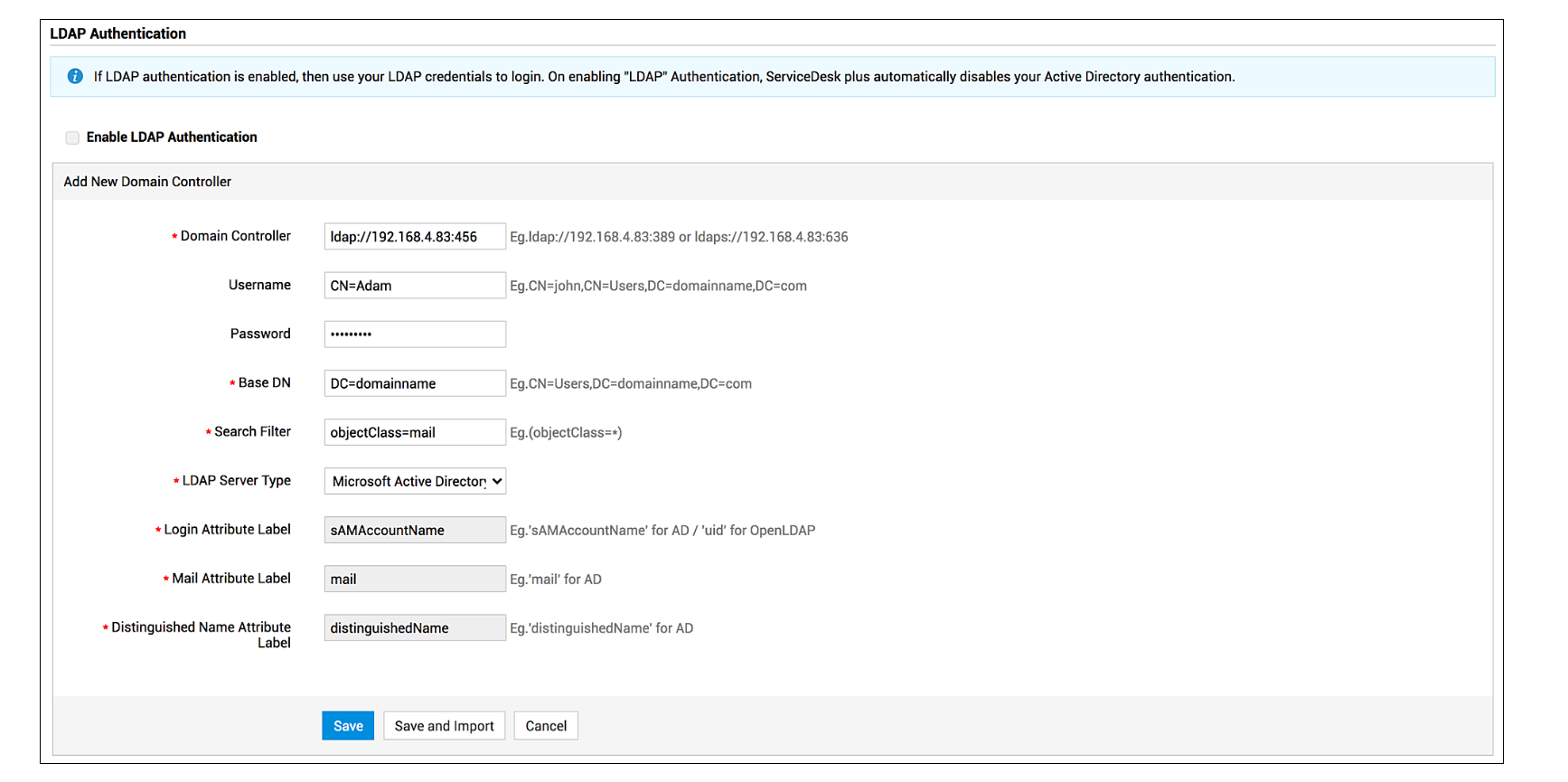 点击保存或保存并导入。也可以点击相应域控制器上的立即导入,从现有域中导入用户。从同一域导入用户时,现有数据将被覆盖。