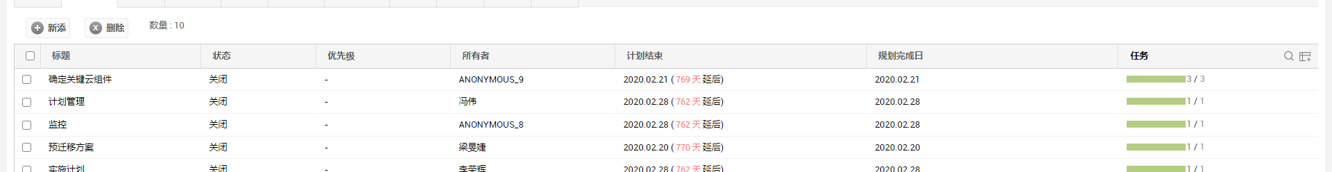 如果项目(实际日期)超过了计划日期,则为延迟。(项目延迟的天数会显示在项目列表视图页面上)。