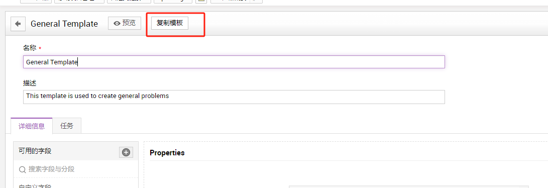 保存问题详细信息后,转到任务选项卡,将任务关联到问题模板。