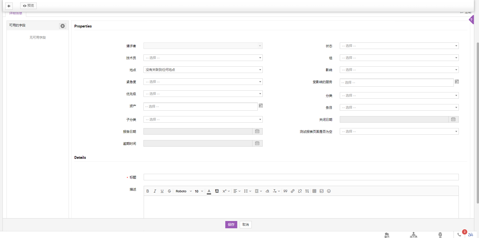 以修改其属性。 - 提供默认字段值 - 在模板字段中输入值。这些值将在使用模板创建问题请求时自动填充。