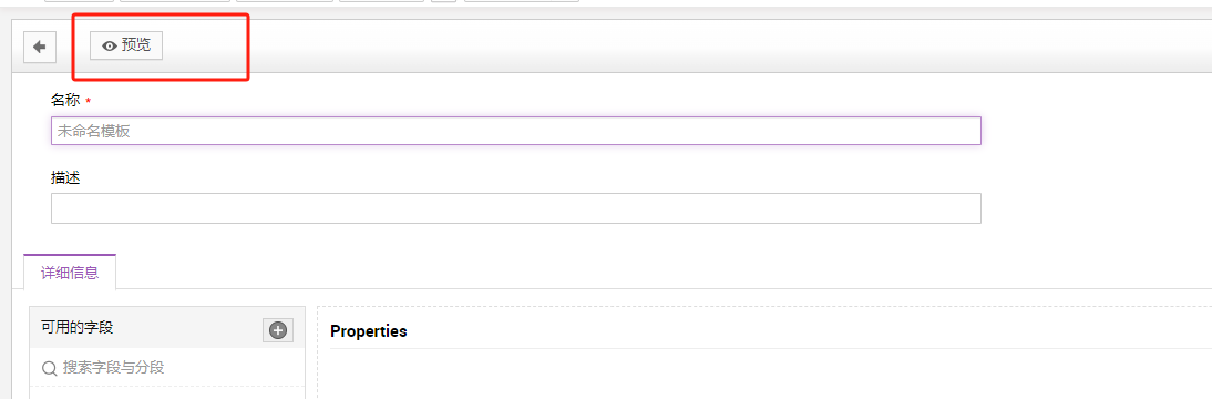 模板表单由三个部分组成:标题、明细(左窗格)和画布。