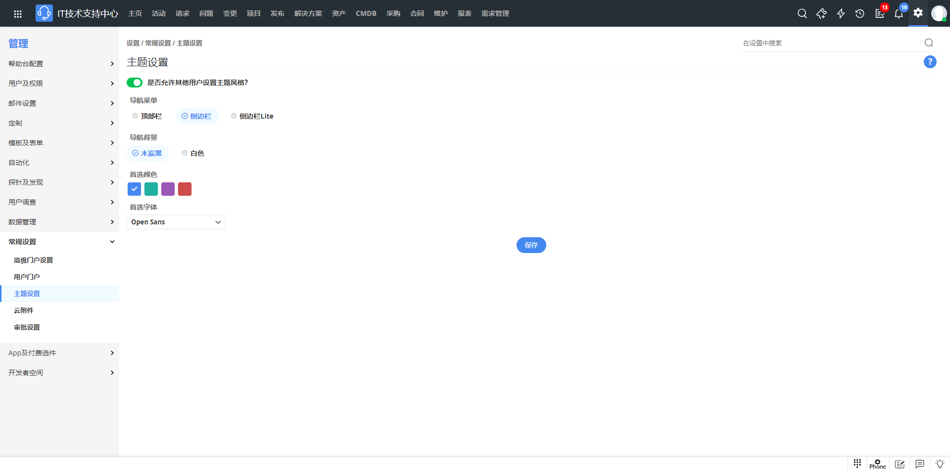 您可以自定义导航菜单的位置和背景颜色,以及字体、帮助台的主题等。您可以在主题设置下对帮助台进行全局设置,也可以点击个人资料图标,在个性化菜单下进行设置。