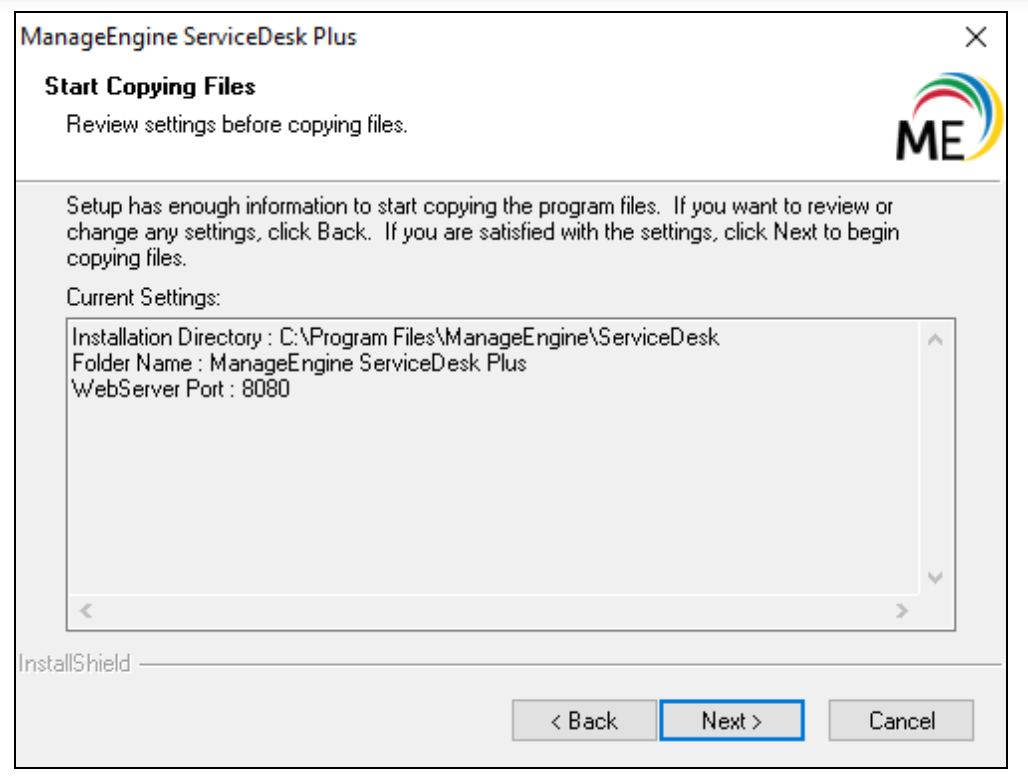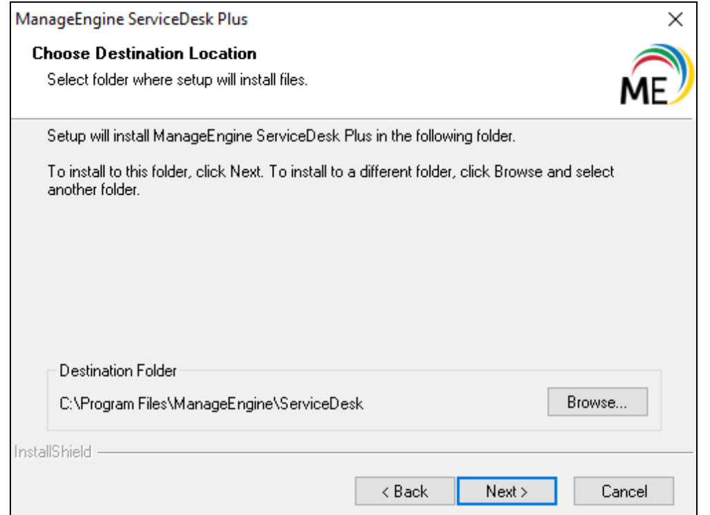 默认情况下,该应用程序安装在 C:\ManageEngine\ServiceDesk 目录下。