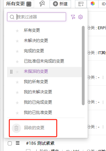 从过滤器下拉菜单中选择回收的变更,您将进入回收站列表视图页面。